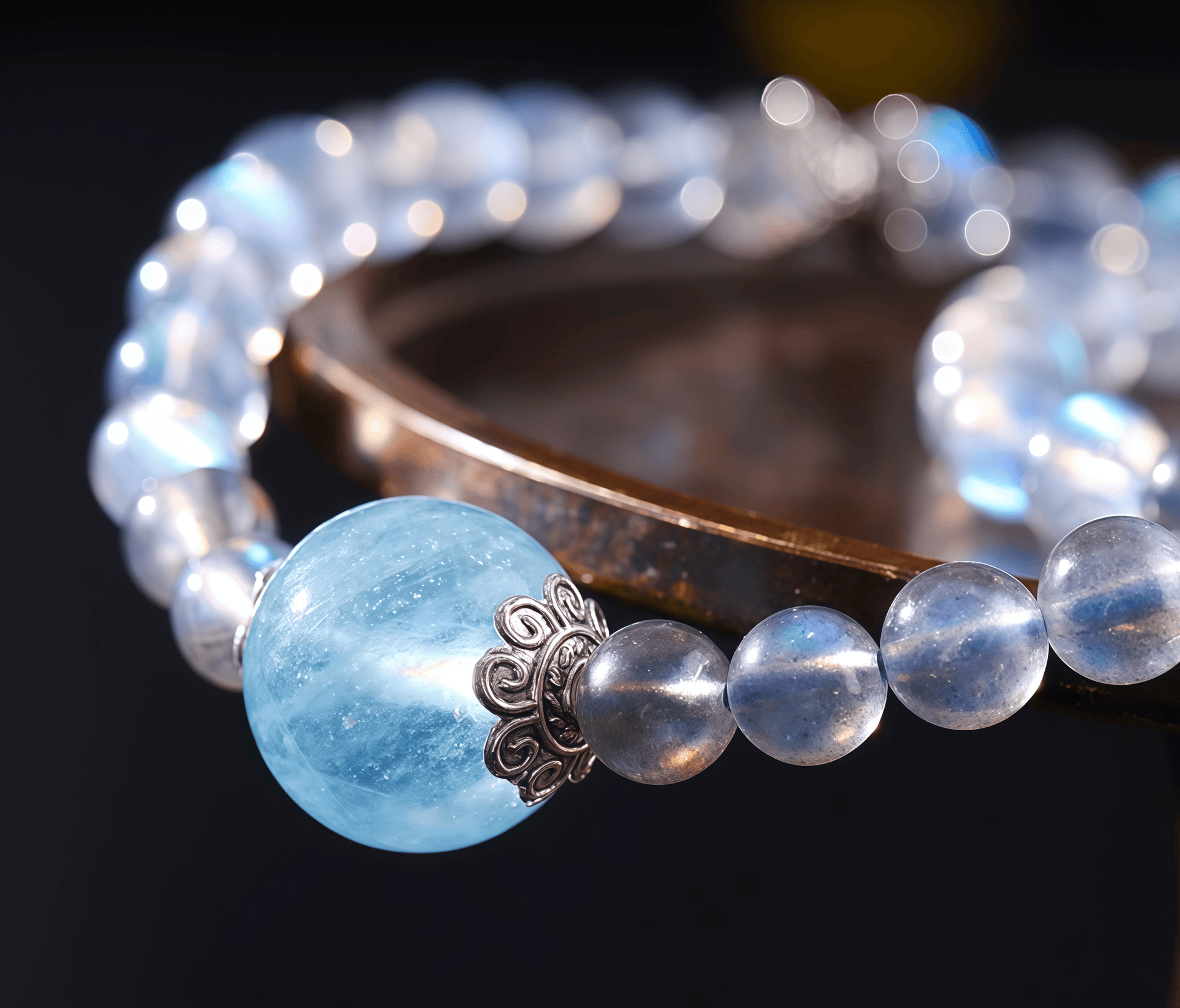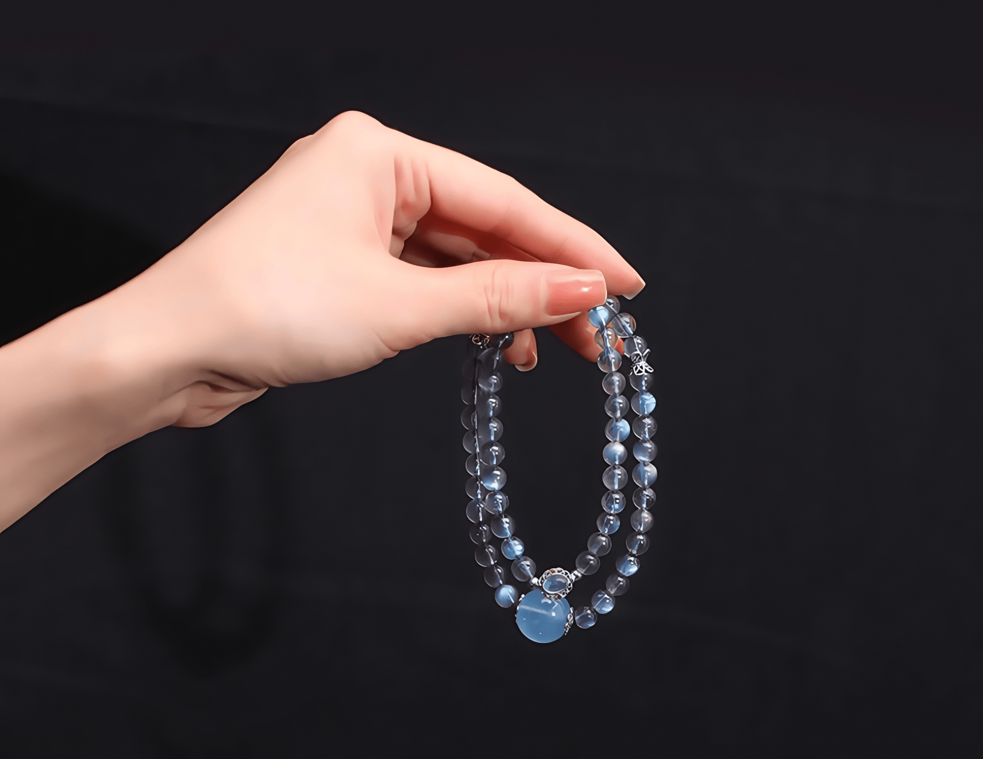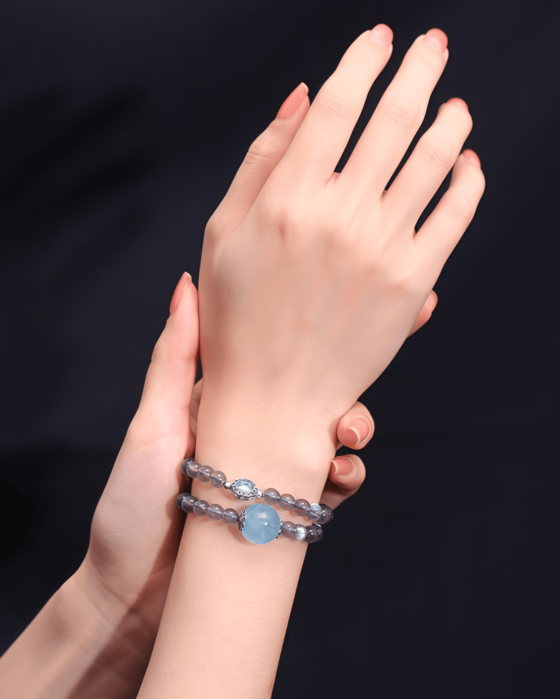 Energy Luxury Ocean Glow Double Strand Bracelet – Aquamarine & Moonstone Crystals