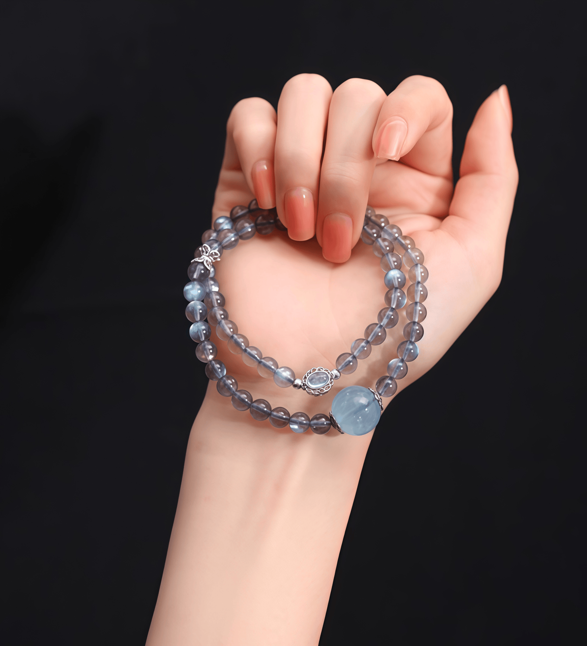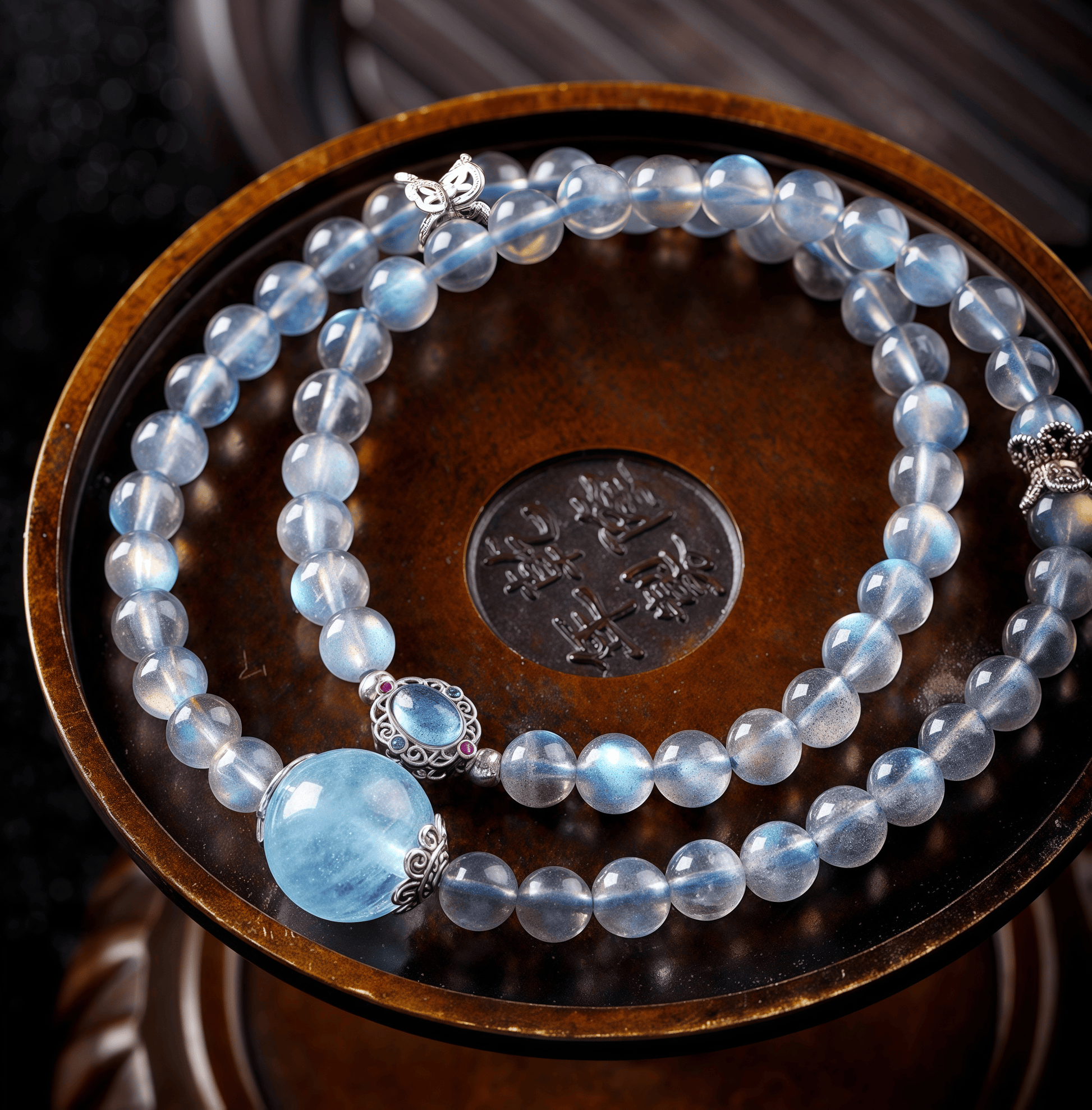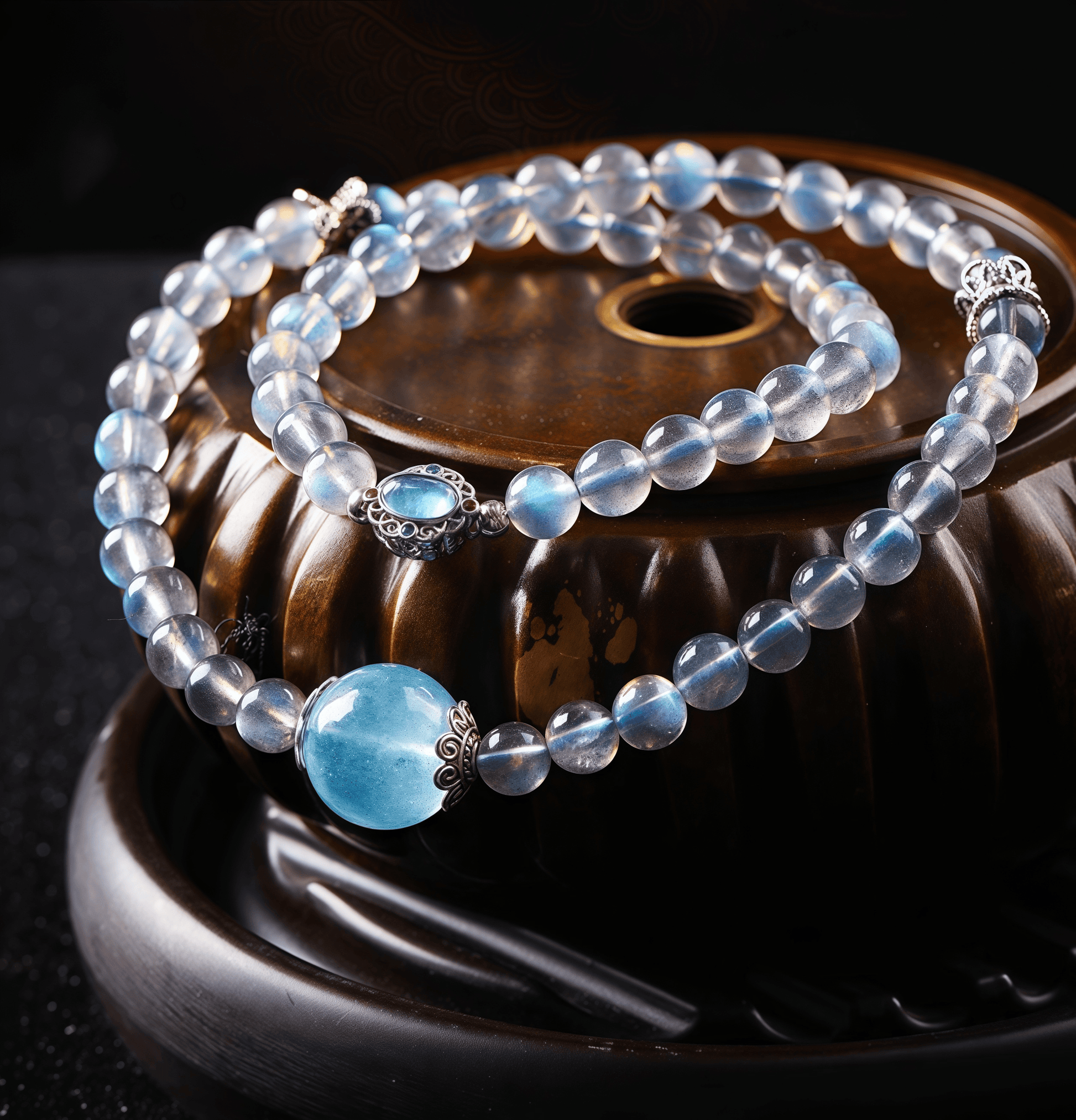 Energy Luxury Ocean Glow Double Strand Bracelet – Aquamarine & Moonstone Crystals