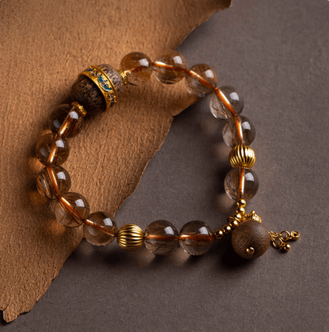 Energy Luxury Natural Golden Rutilated Quartz Earth Element Bracelet