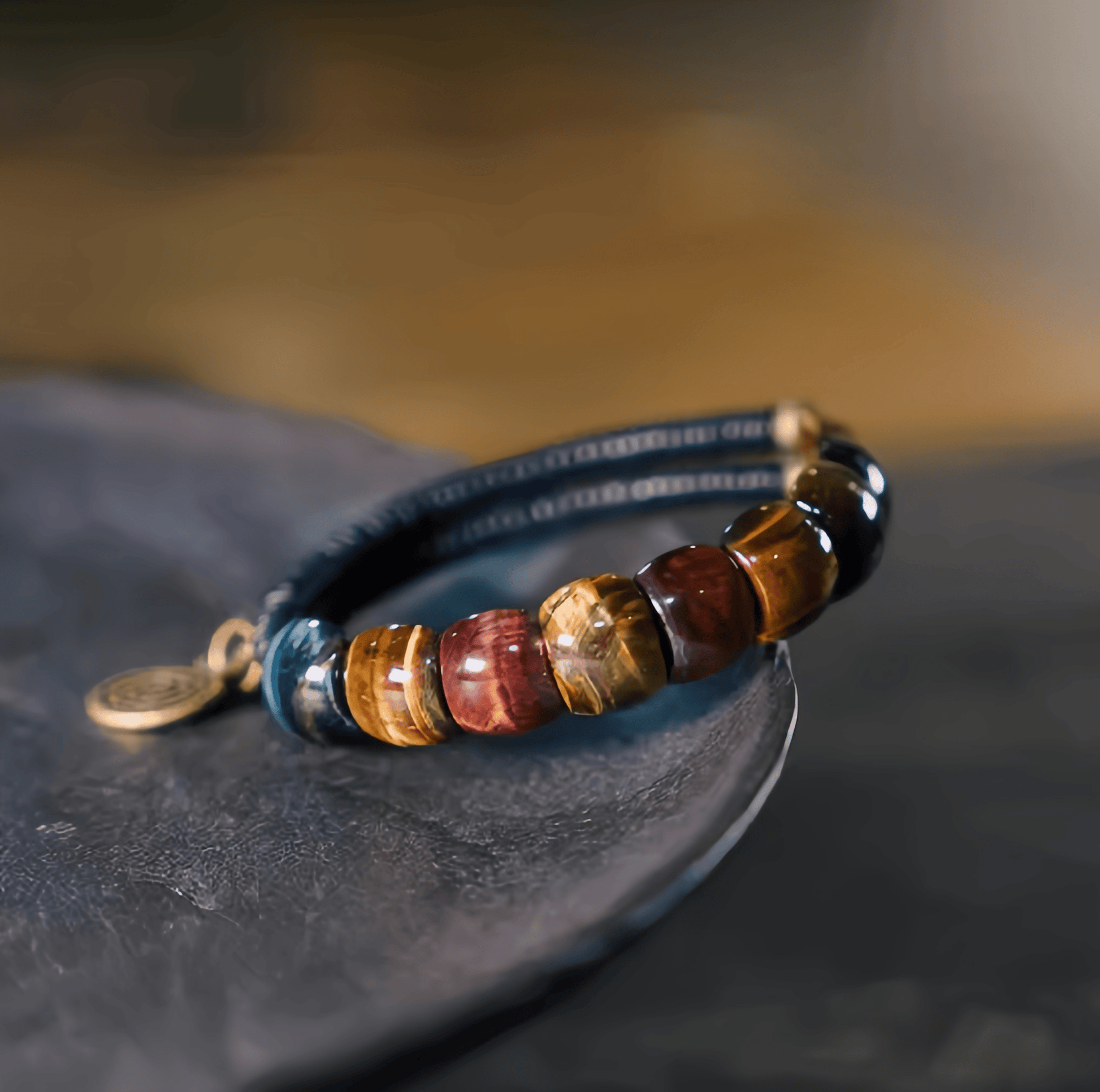 What do the different materials and symbols on the bracelet mean?