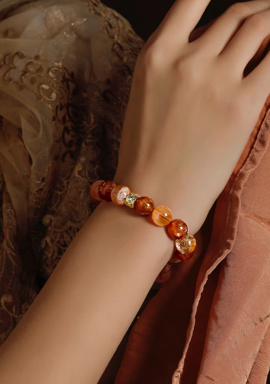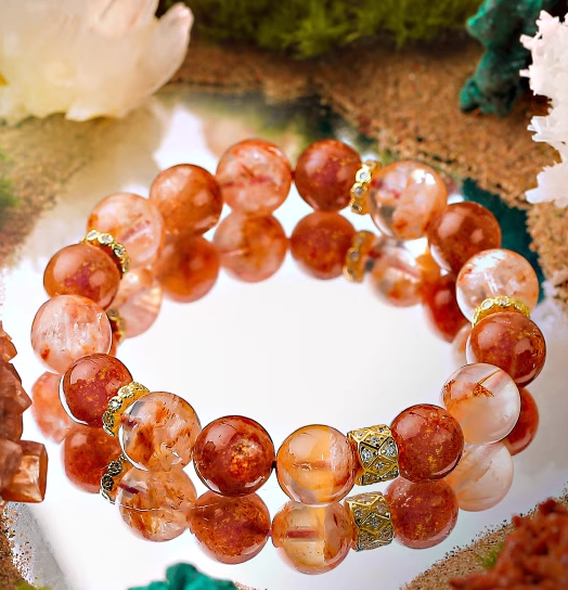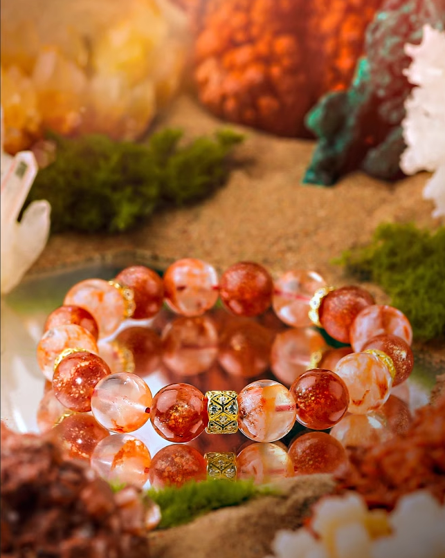 La Llama de la Pasión – Pulsera de Cuarzo Fantasma con Elemento Fuego y Escarcha de Sangre Natural