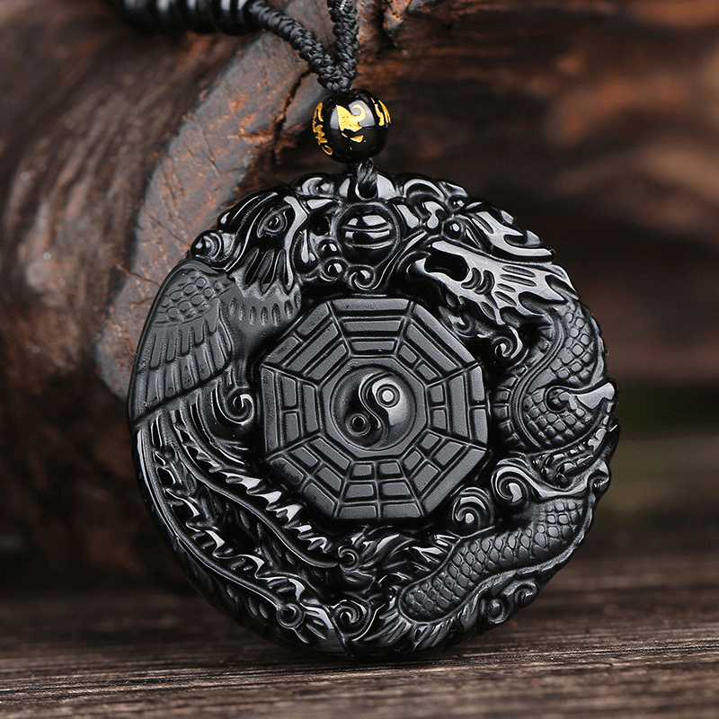 An ancient Taoist symbol of balance and defense, this handcrafted Bagua Protection Amulet features a polished obsidian core and Eight Trigram. Worn over the chest or hung near an entryway, it wards off negative influences and enhances energetic harmony.