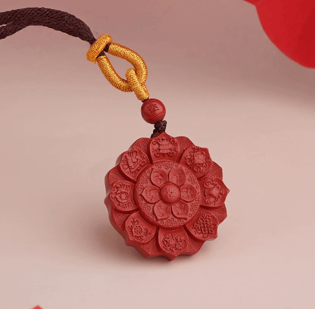 Energy Luxury Cinnabar Pendant Auspicious Eight Treasures Necklace