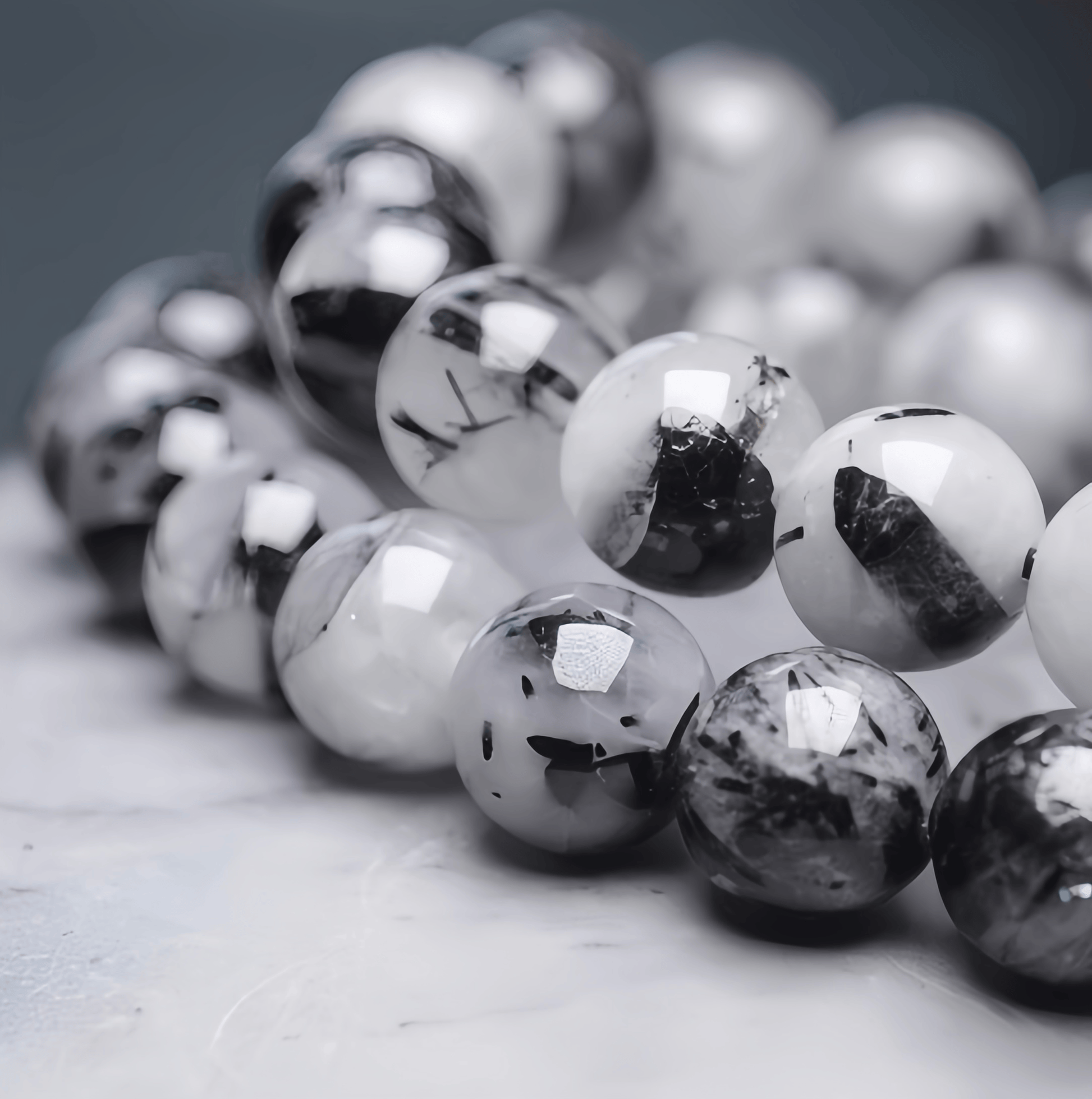 Energy Luxury Handmade Ethnic Bracelet – Black Rutilated Quartz with White Crystal Tassel for Peace