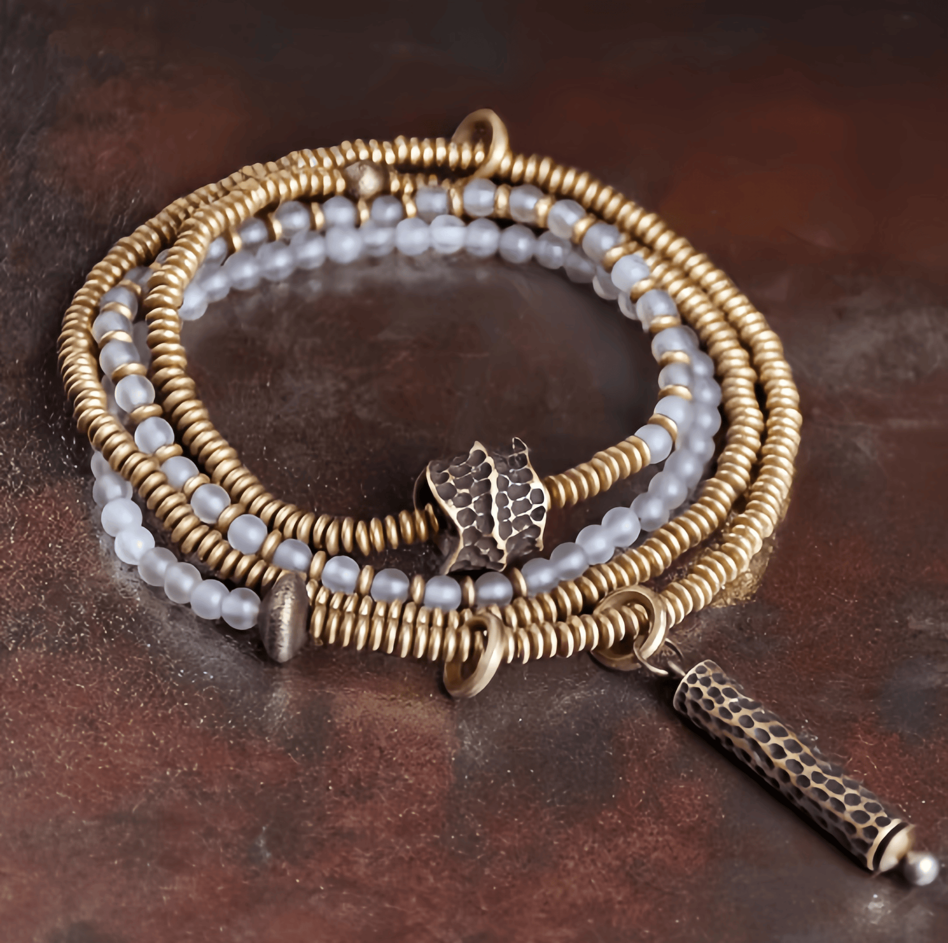 Energy Luxury Handcrafted Multi-Strand Agate Brass Bracelet