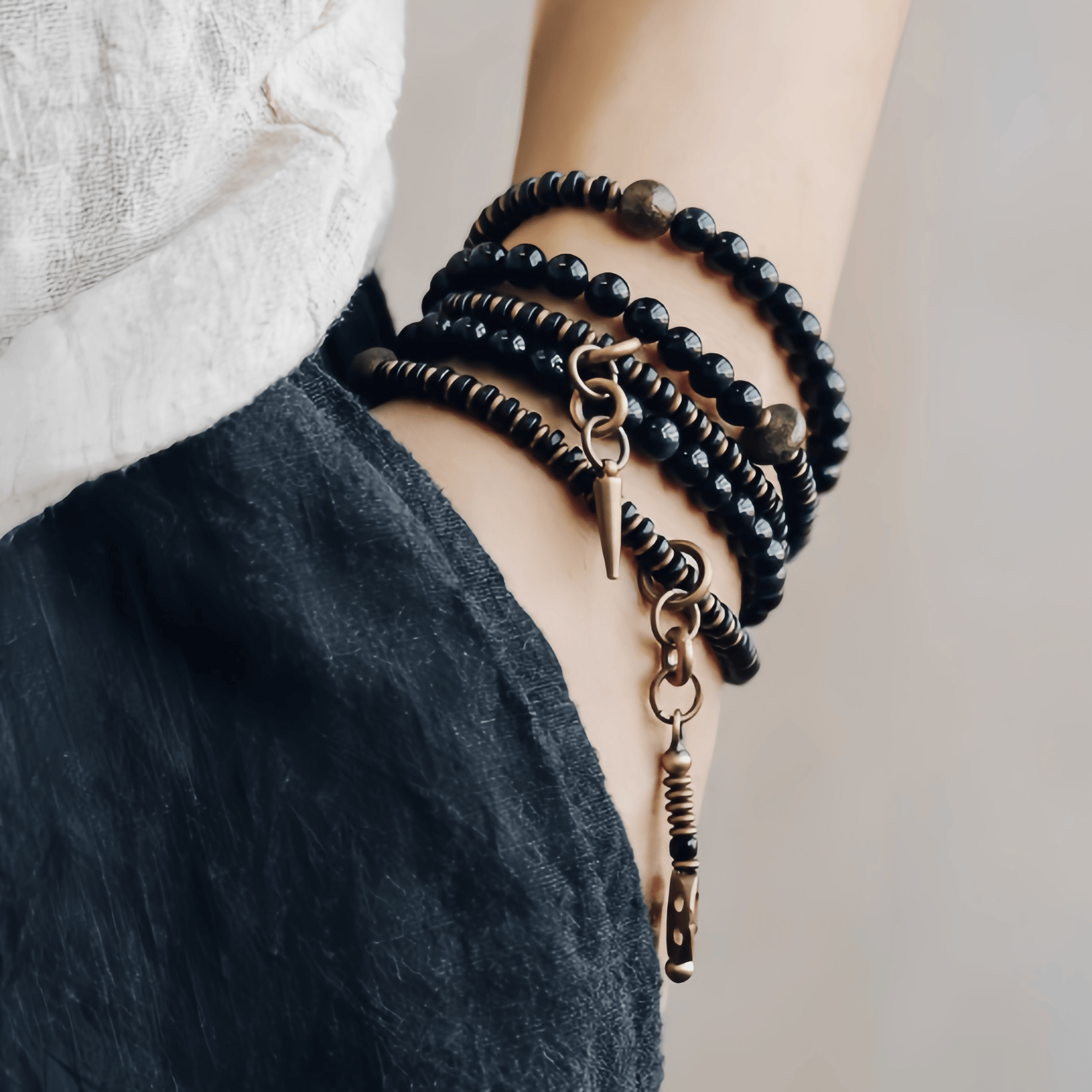 Energy Luxury Handcrafted Multi-Strand Obsidian Bracelet