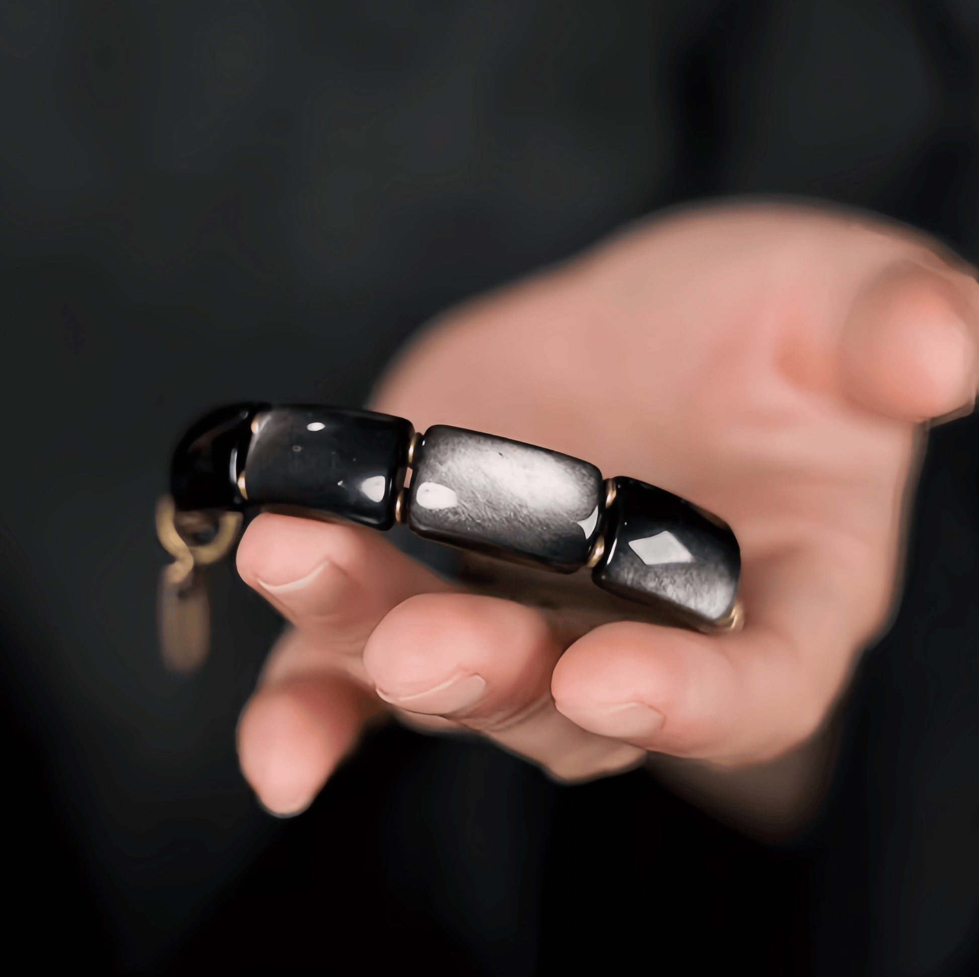 Energy Luxury Handcrafted Obsidian & Silver Obsidian Bracelet