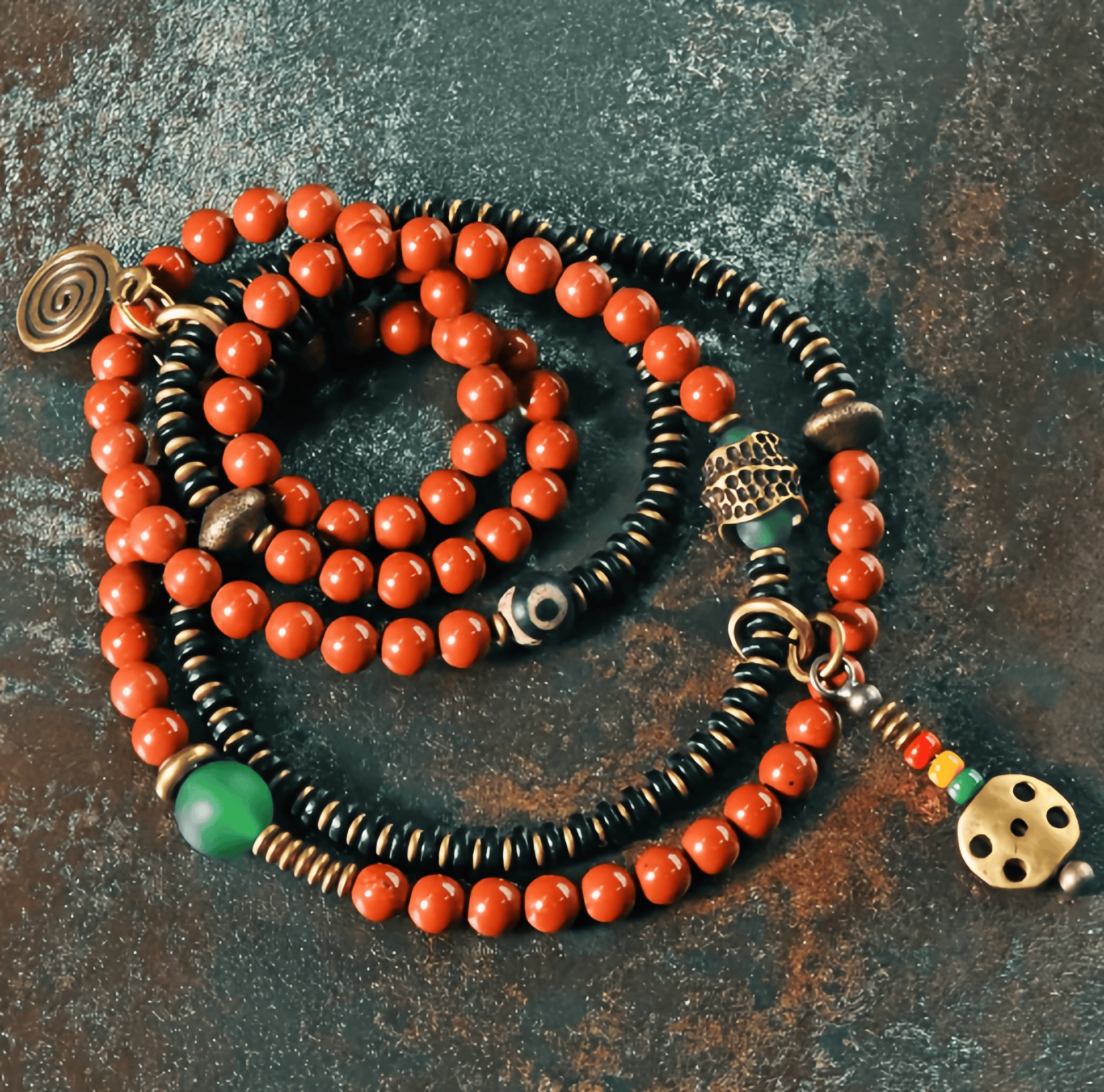 Energy Luxury Multi-Strand Red Stone Bracelet Featuring Sandalwood