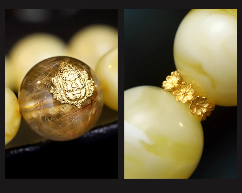 Energy Luxury Collector-Grade Natural Amber Earth Element Bracelet-11mm